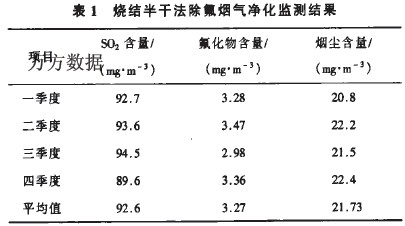 由現場監(jian)測結(jie)果得知(zhi):機(ji)頭(tou)煙氣含塵3 000-,19,m3,含s02472.5 IIlg/m3,含氟化物(wu)109.4-ng/m3。對燒結(jie)機(ji)頭(tou)煙氣排(pai)放濃度(du)監(jian)測結(jie)果見(jian)表l。