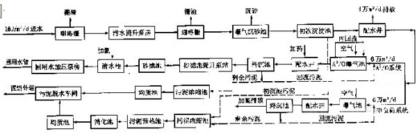 該廠雖經兩次擴建,但是限于當時技術設備條件,設備多為非污水處理工程專用設備。加之經過多年運轉,設備嚴重老化、技術落后、故障頻繁、能耗高、難以維持污水廠正常生產運轉。因此,1994年西安市市政工程管理局結合近幾年城市發展和排水規劃調整,對污水廠提出改造方案,經改造后處理規模擴大到16萬m3/d,污水、污泥處理工藝流程各為兩條線。污水處理:中負荷系統采用傳統活性污泥法工藝(處理水量6萬m3/d);深度處理系統采用A2/O活性污泥法+微絮凝過濾工藝(處理水量6萬m3/d);其余4萬m3/d污水經一級處理后排放。