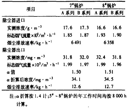 7號(hao)(hao)鍋爐除(chu)(chu)塵(chen)(chen)器A、B兩(liang)系列(lie)出口的(de)煙塵(chen)(chen)平(ping)均(jun)排(pai)放(fang)濃(nong)(nong)(nong)度(du)均(jun)為(wei)34.lmg/m3,8號(hao)(hao)鍋爐除(chu)(chu)塵(chen)(chen)器A、B兩(liang)系列(lie)出口的(de)煙塵(chen)(chen)平(ping)均(jun)排(pai)放(fang)濃(nong)(nong)(nong)度(du)為(wei)34.5mg/m3,符合《火電廠(chang)大(da)氣(qi)污(wu)染物排(pai)放(fang)標(biao)準(GBI3223一2003)中第三時段標(biao)準煙塵(chen)(chen)最高(gao)允許排(pai)放(fang)濃(nong)(nong)(nong)度(du)100mg/m3的(de)要求;7號(hao)(hao)和8號(hao)(hao)鍋爐除(chu)(chu)塵(chen)(chen)器除(chu)(chu)塵(chen)(chen)率為(wei)99.8%。