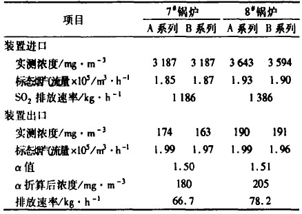 7號鍋(guo)(guo)爐脫(tuo)硫裝置后(hou)除塵(chen)器A、B兩系列出(chu)口的SO2平均排放濃度(du)皆為(wei)(wei)180mg/m3,8號鍋(guo)(guo)爐脫(tuo)硫裝置后(hou)除塵(chen)器A、B兩系列出(chu)口的SO2平均排放濃度(du)皆為(wei)(wei)205mg/m3,符(fu)合(he)《火電廠(chang)大氣污染(ran)物排放標準(zhun)》(GB13223一2003)中(zhong)最高允許排放濃度(du)400mg/m3的要求;7號和8號鍋(guo)(guo)爐脫(tuo)硫裝置脫(tuo)硫效率均為(wei)(wei)94.4%。
