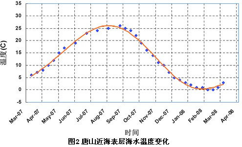 圖2 唐山近海表層海水溫度變化