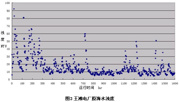圖3 王灘電廠原海水濁度