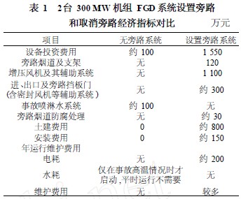 采用無煙氣旁路技術簡化了工藝系統、減少了設備、節省了場地,從而節約基建投資,節省運行費用。具體對比指標見下表1。