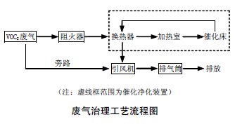 催化燃燒廢氣治理系統主(zhu)要由阻火(huo)器(qi)、熱(re)交換器(qi)、加熱(re)室、催化床(chuang)、引風機、電(dian)控(kong)柜及安(an)全報(bao)警(jing)裝置等組成。