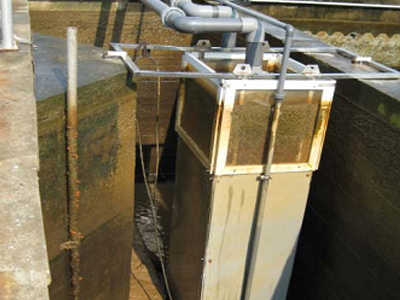 蘆涇水廠:置于絮凝池內試驗(yan)的膜(mo)組件 |