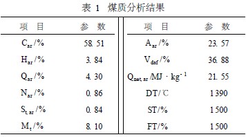 山東(dong)日照電廠一期(qi)2 ×350MW 機組燃煤(mei)煤(mei)質分析數據(ju)見表1。