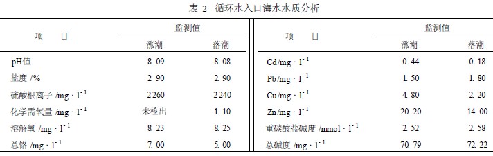 循環水入口(kou)海(hai)水水質見表2。