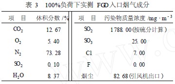 2. 3 鍋爐100%負荷下實測FGD入口煙氣成分