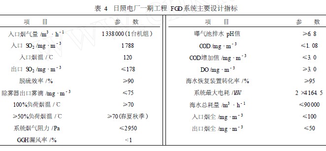 4 FGD系統主要設計指標
