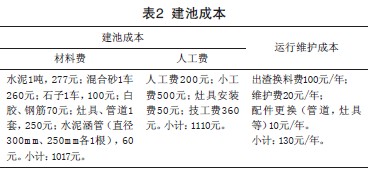 8m3聯戶沼氣池建池成本約為2127元,運行維護成本為130元/年,詳見表2。