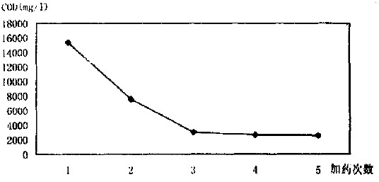 將上述混合液用粉煤灰進行過濾后取10mL進行COD測定,余量則在試驗條件不變的情況下重復加藥,加藥量仍保持在500mg/L,再重復過濾和加藥的步驟,共計加藥4次,每次都測定過濾液的COD.