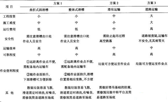 通過以(yi)上綜合比較,3種方(fang)案的優先順序為(wei):滑(hua)道(dao)(dao)(dao)運輸、塔吊(diao)運輸、道(dao)(dao)(dao)路(lu)運輸,滑(hua)道(dao)(dao)(dao)方(fang)案中曲(qu)折式(shi)斜(xie)滑(hua)槽又優于整體(ti)式(shi)滑(hua)槽,設計最(zui)終采用曲(qu)折式(shi)斜(xie)滑(hua)槽。