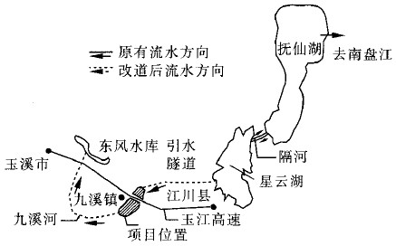 本(ben)工程自星(xing)云湖西岸向(xiang)九(jiu)溪方(fang)向(xiang)開挖引水(shui)(shui)隧 道(dao),將星(xing)云湖水(shui)(shui)引到(dao)九(jiu)溪后分人(ren)生(sheng)態(tai)凈(jing)(jing)化(hua)處(chu)理(li)場和(he) 旁通道(dao)。湖水(shui)(shui)經生(sheng)態(tai)凈(jing)(jing)化(hua)場處(chu)理(li)后達到(dao)不低于東風 水(shui)(shui)庫(ku)(ku)(ku)水(shui)(shui)質(zhi),隨(sui)后泄人(ren)東風水(shui)(shui)庫(ku)(ku)(ku);超過生(sheng)態(tai)凈(jing)(jing)化(hua)工程處(chu) 理(li)能(neng)力或東風水(shui)(shui)庫(ku)(ku)(ku)蓄水(shui)(shui)不需要的水(shui)(shui)量經旁通道(dao)匯(hui)入(ru) 玉(yu)溪州大(da)河,之后繞道(dao)排(pai)人(ren)南盤(pan)江。具體見圖1。