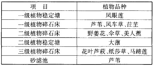 在利用(yong)(yong)植(zhi)(zhi)(zhi)物進行水質凈化時(shi),植(zhi)(zhi)(zhi)物的選擇(ze)(ze)顯得 尤為(wei)重要。選擇(ze)(ze)原則如下(xia):首先要盡量(liang)選用(yong)(yong)當地(di)植(zhi)(zhi)(zhi) 物品種;其次是要根據各(ge)處(chu)理池(chi)的工藝要求進行選 擇(ze)(ze),人(ren)工碎石(shi)床濕(shi)地(di)的大部分(fen)濕(shi)地(di)植(zhi)(zhi)(zhi)物為(wei)草(cao)本植(zhi)(zhi)(zhi)物, 或采用(yong)(yong)喬木(mu)/草(cao)本混合種植(zhi)(zhi)(zhi)方(fang)式,盡量(liang)豐(feng)富植(zhi)(zhi)(zhi)物的結 構類型,以提高植(zhi)(zhi)(zhi)物的凈化能力。在生(sheng)物穩定塘(tang)(tang)中(zhong), 主要使用(yong)(yong)漂浮和(he)浮葉(xie)植(zhi)(zhi)(zhi)物,以增加(jia)塘(tang)(tang)系統的凈化效(xiao) 率。 各(ge)處(chu)理池(chi)的植(zhi)(zhi)(zhi)物選擇(ze)(ze)見表2。