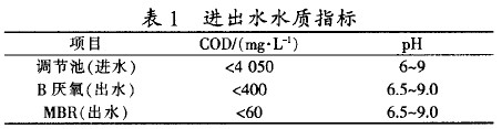 整套裝置(zhi)設計(ji)廢水處理能力為45 t/h,MBR設計(ji)處理量為40 t,h,設計(ji)進出(chu)水水質指標見表1。