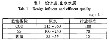 設計進、出水水質見表1。