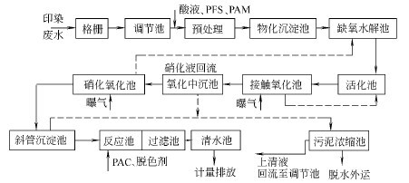 圖1 無錫海江印染有限公司印染廢水處理工藝流程