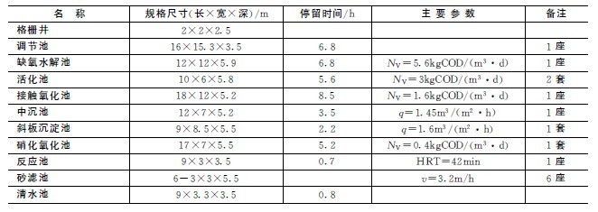 表2 無錫海江印染有限公司廢水處理站主要構筑物