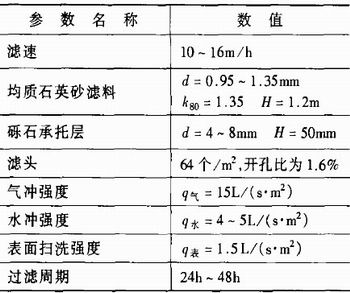 溫(wen)嶺水廠V型(xing)濾池工(gong)(gong)程由(you)中國市政東北(bei) 設(she)計(ji)院深圳分(fen)院設(she)計(ji),設(she)計(ji)處理能力4.5萬 mj/d。該(gai)工(gong)(gong)程于1998年11月(yue)4日開(kai)工(gong)(gong).1999 年6月(yue)30日竣(jun)工(gong)(gong)。濾池共分(fen)6格,分(fen)兩(liang)排布 置,單格過濾面(mian)積(ji)為48m ,池深4,10m。具體(ti) 工(gong)(gong)藝參(can)數(shu)見表1。