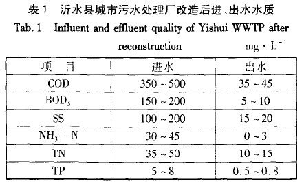 沂水縣城市污水處理廠(chang)經(jing)改造(zao)后(hou)(hou),處理水量仍為(wei)5×10 m /d,出(chu)水水質(zhi)達到(dao)了《城鎮污水處理廠(chang)污染物(wu)排放標準》(GB 18918—2O02)的一級B標準。改造(zao)后(hou)(hou)的進(jin)、出(chu)水水質(zhi)見表1。