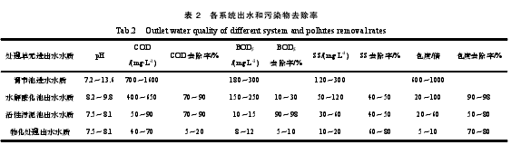 預處理調節池用來調節進水的pH和溫度,降低對生化 系統的危害。廢水經粗格柵后進入廠家集水池,由提升泵泵 入調節池。在管道中安裝在線pH計,對pH、水溫進行動 態監測。若水溫高于42℃,通過自動切換裝置將廢水切換 至冷卻塔,經冷卻降溫后自流進入調節池。根據測得的pH 自動控制加入硫酸的量,使8.5≤pH≤10,然后由提升泵泵 入水解酸化池。廢水在調節池中的停留時間為7.5 h。 預處理的好壞直接影響到后續生物處理設施的運行效 果,如進水溫度過高時(>42℃),微生物的活性會受到很大 的限制,直接導致出水水質變差;進水硫化物濃度過高(>40 mg/L)也對微生物有很大的毒性,嚴重時會導致微生物 死亡,系統癱瘓。硫化物的出現是因為企業生產過程中采用 了硫化染料,定期了解企業的生產狀況及廢水排放周期,有 針對性地投加適量的亞鐵鹽,可消除其危害。