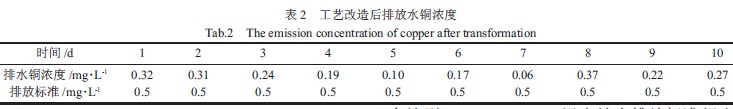 金(jin)屬(shu)綜合(he)廢水增加(jia)內(nei)電解(jie)(jie)處理工藝。通過對比(bi)(bi)和參(can)考類似廢水處理工程[12-13]的反(fan)應(ying)條件(jian),決(jue)定(ding)內(nei)電解(jie)(jie)池(chi)反(fan)應(ying)條件(jian)為(wei):pH 3~4,反(fan)應(ying)水力停留(liu)時間90 min,填料為(wei)鐵(tie)刨(bao)花和焦炭(tan)(tan)與(yu)活性炭(tan)(tan)的混合(he)物,鐵(tie)炭(tan)(tan)比(bi)(bi)m (Fe):m(C)=4:1。為(wei)使反(fan)應(ying)完全(quan)(quan),節省日常運行(xing)費,內(nei)電解(jie)(jie)池(chi)出水采取部(bu)分循環回(hui)內(nei)電解(jie)(jie)池(chi)的進(jin)口端(duan)。改進(jin)后(hou),連續10d 的銅的排(pai)放(fang)指標見表2。可以看出,增加(jia)內(nei)電解(jie)(jie)工藝后(hou),銅的排(pai)放(fang)濃度(du)[Cu]max=0.37 mg·L-1,[Cu]min=0.06 mg·L-1,[Cu]ave=0.252 mg·L-1,完全(quan)(quan)達到GB 8978-1996 污(wu)水綜合(he)排(pai)放(fang)標準規定(ding)的一級排(pai)放(fang)標準[14]。