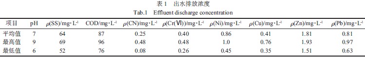 設計出水(shui)(shui)水(shui)(shui)質按照污(wu)水(shui)(shui)綜合(he)排(pai)放標準(zhun)(GB 8978-1996)一級標準(zhun),具體指標值為:pH 為6~9, COD 100 mg·L-1,SS 質量(liang)濃(nong)度(du)(du)70 mg·L-1,CN 質量(liang)濃(nong)度(du)(du)0.5 mg·L-1,Cr(Ⅵ) 質量(liang)濃(nong)度(du)(du)0.5 mg·L-1,Ni 質量(liang)濃(nong)度(du)(du)1.0 mg·L-1,Cu 質量(liang)濃(nong)度(du)(du)0.5 mg·L-1,Zn 質量(liang)濃(nong)度(du)(du)5.0 mg·L-1,,Pb 質量(liang)濃(nong)度(du)(du)1.0 mg·L-1。