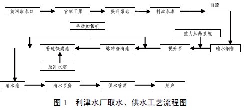 利津(jin)水(shui)廠(chang)地處(chu)東(dong)營市利津(jin)縣城以北約15km處(chu),隸屬(shu)勝利石油管理(li)(li)局供水(shui)公司(si)管理(li)(li)。該水(shui)廠(chang)于1992年10月(yue)投產,設計規模 5萬m3/d,采用“脈沖澄(cheng)清池(chi)+普通(tong)快(kuai)濾池(chi)”的(de)常規處(chu)理(li)(li)工藝,以黃河水(shui)為水(shui)源。