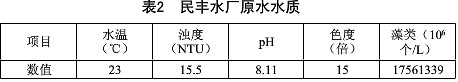提升泵房出水進入中置式高密度沉淀池,中置式高密度沉淀池出水進入均質濾料濾池。民豐水廠原水水質見表2。