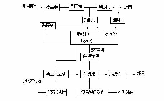 本技術方案采用雙堿法進行煙氣脫硫,工藝流程框圖如下圖所示: