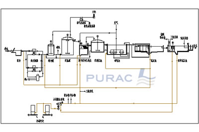 酵(jiao)母(mu)廠產生的(de)(de)廢(fei)水(shui)(shui)先經過格柵去(qu)除大顆(ke)粒雜質(zhi)(zhi)后(hou)進(jin)(jin)入(ru)(ru)(ru)熱(re)交(jiao)換器加熱(re),再進(jin)(jin)入(ru)(ru)(ru)均衡/水(shui)(shui)解池(chi)和完全(quan)混(hun)合式厭氧(yang)(yang)反應池(chi),產生的(de)(de)沼(zhao)氣(qi)通過頂部(bu)沼(zhao)氣(qi)管(guan)排出(chu)后(hou)利用(yong),廢(fei)水(shui)(shui)進(jin)(jin)入(ru)(ru)(ru)蘭美(mei)拉沉(chen)(chen)淀池(chi)進(jin)(jin)行分離(li)后(hou)廢(fei)水(shui)(shui)進(jin)(jin)入(ru)(ru)(ru)好(hao)氧(yang)(yang)系(xi)統(tong)(tong),由于此(ci)廢(fei)水(shui)(shui)含(han)氮較(jiao)高,故該好(hao)氧(yang)(yang)系(xi)統(tong)(tong)設(she)計為(wei)硝化-反硝化處(chu)理(li)系(xi)統(tong)(tong),其出(chu)水(shui)(shui)通過二沉(chen)(chen)池(chi)澄清(qing)后(hou)進(jin)(jin)入(ru)(ru)(ru)化學絮凝段(duan),沉(chen)(chen)淀污泥回流(liu)到嚗氣(qi)池(chi),剩余活性污泥送入(ru)(ru)(ru)厭氧(yang)(yang)反應池(chi)再消(xiao)化。由于此(ci)廢(fei)水(shui)(shui)中含(han)有大量(liang)的(de)(de)難降解的(de)(de)有機(ji)物(wu),僅生化處(chu)理(li)系(xi)統(tong)(tong)難以去(qu)除,因此(ci)在二沉(chen)(chen)池(chi)后(hou)