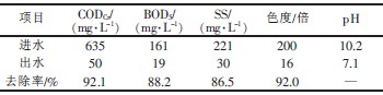 本工程(cheng)于2010 年(nian)3 月(yue)進行調試,調試期約5 個月(yue),結果(guo)發(fa)現該工藝對CODCr、BOD5、SS 等的去除(chu)率達到了預期效果(guo),并通過了環境監測部門的驗收,連(lian)續24 h 滿負荷運行后(hou)的取(qu)樣監測結果(guo)見表2。