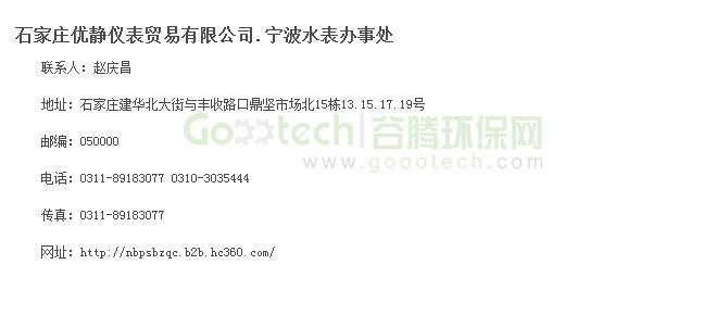 石家莊優靜儀表貿易有限公司.寧波水表辦事處