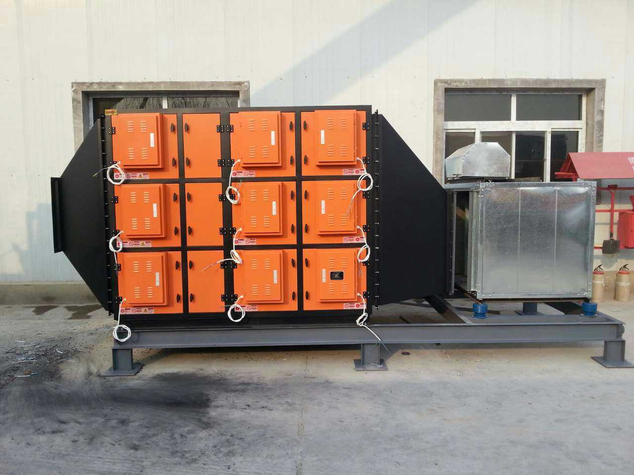 吸收法的優點是設備簡單、維修方便、系統阻力小,能耗低,運行費用少,其缺點是存在二次污染,凈化的效率不高,因此沒有得到廣泛應用,需要改進。 瀝青煙氣處理設備工作原理: 本凈化系統處理后的瀝青煙氣排放滿足《大氣污染物排放標準 GB 16297— 1996》。瀝青煙氣主要是以0.1~1.0um的焦油細霧粒的形態存在,其凈化治理就是盡可能多地捕捉這些微小的顆粒,使煙氣的排放滿足相關標準,又不形成二次污染。瀝青攪拌罐內產生的瀝青煙氣還含有粉塵。粉塵處理方法就是噴淋,使之全部溶于溶液,這樣不但及時清理了管道,而且杜絕了火災的發生。