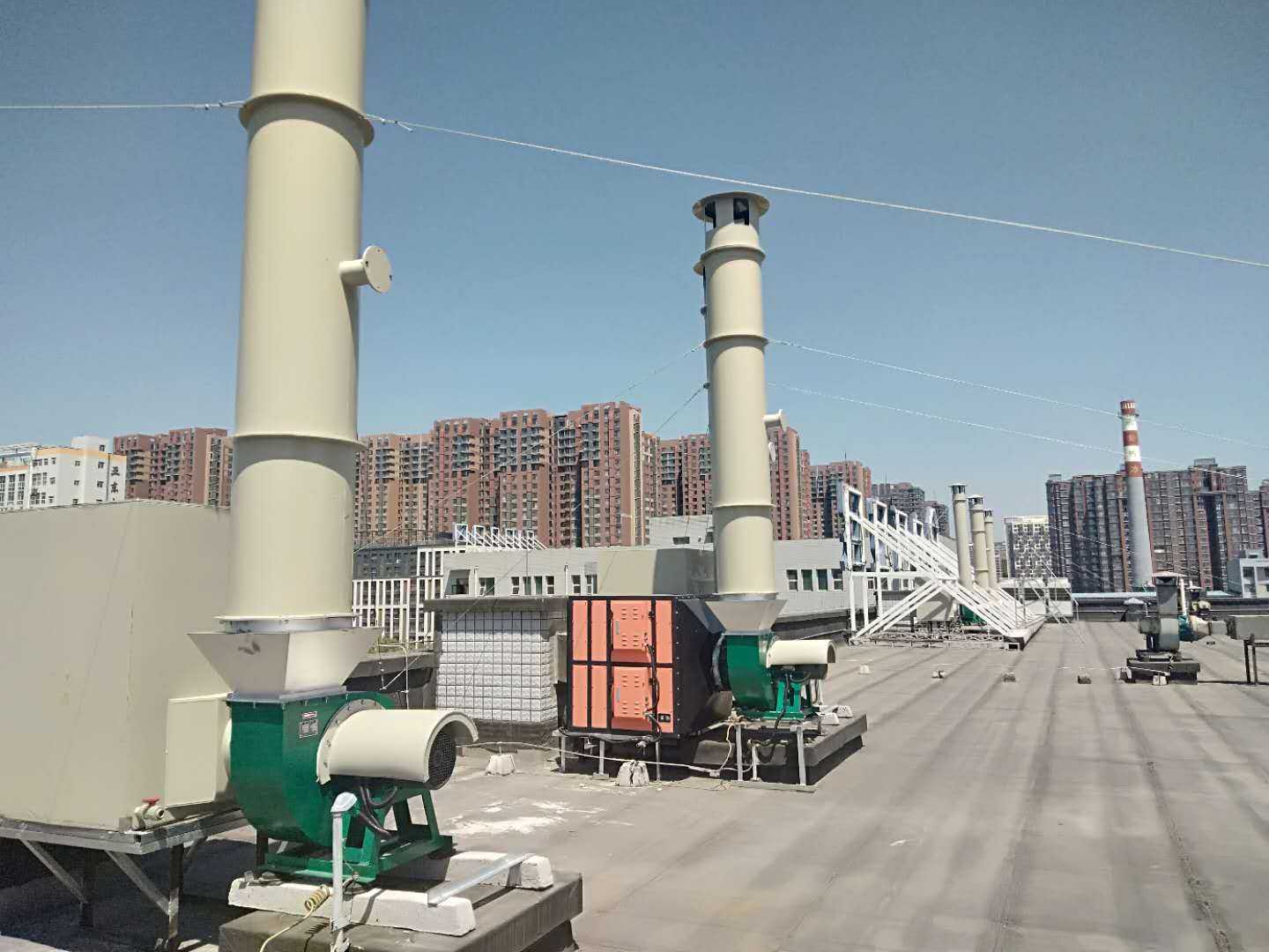 目前,我公司自主開發了凈化效率高、操作管理簡單、使用壽命長的酸、堿性廢氣凈化工藝與設備。該工藝與產品綜合國內外同類凈化塔的優點,多級旋轉式噴淋、吸收,同時對填料層及塔體進行了技術參數上的優化,結構簡單、能耗低、凈化效率高和適用范圍廣的特點,酸霧廢氣由風管引入凈化塔,經過填料層,廢氣與氫氧化鈉吸收液進行氣液兩相充分接觸吸收中和反應,酸霧廢氣經過凈化后,再經除霧板脫水除霧后由風機排入大氣。吸收液在塔底經水泵增壓后在塔頂噴淋而下,最后回流至塔底循環使用。