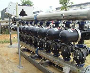 當到達一定壓差時,系統自動進入反洗狀態,控制器控制閥門改變水流方向,反沖水壓使疊片被松開,位于疊中央的噴嘴沿切線噴射,使疊片旋轉,將截留在疊片上的雜質沖洗甩出。當反沖結束時,水流方向再次改變,疊片再次被壓緊,系統重新進入過濾狀態。