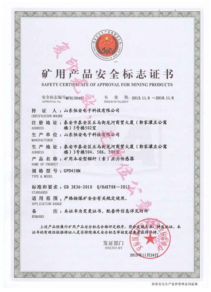 GPD450M礦用本安型錨桿(索)應力傳感器煤安證