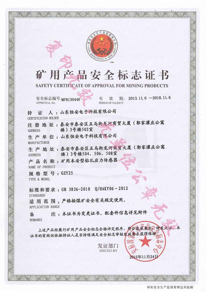 GZY25礦用本安型鉆孔應力傳感器煤安證