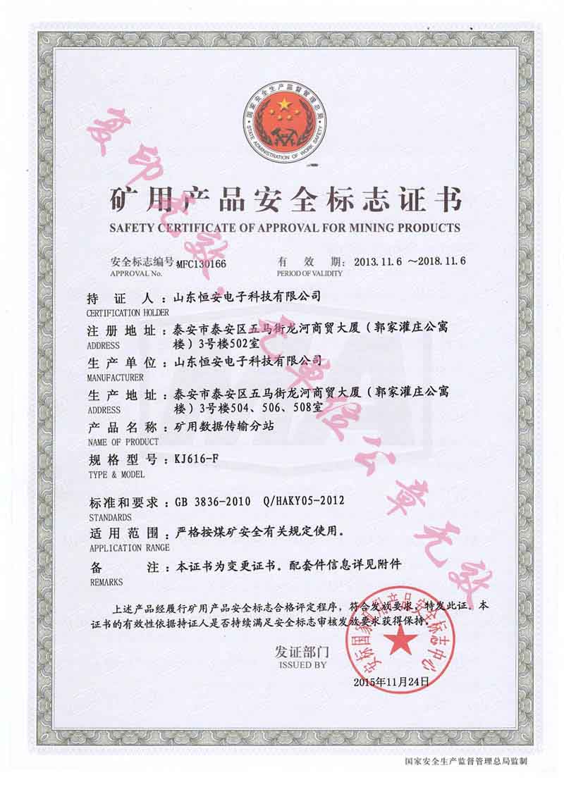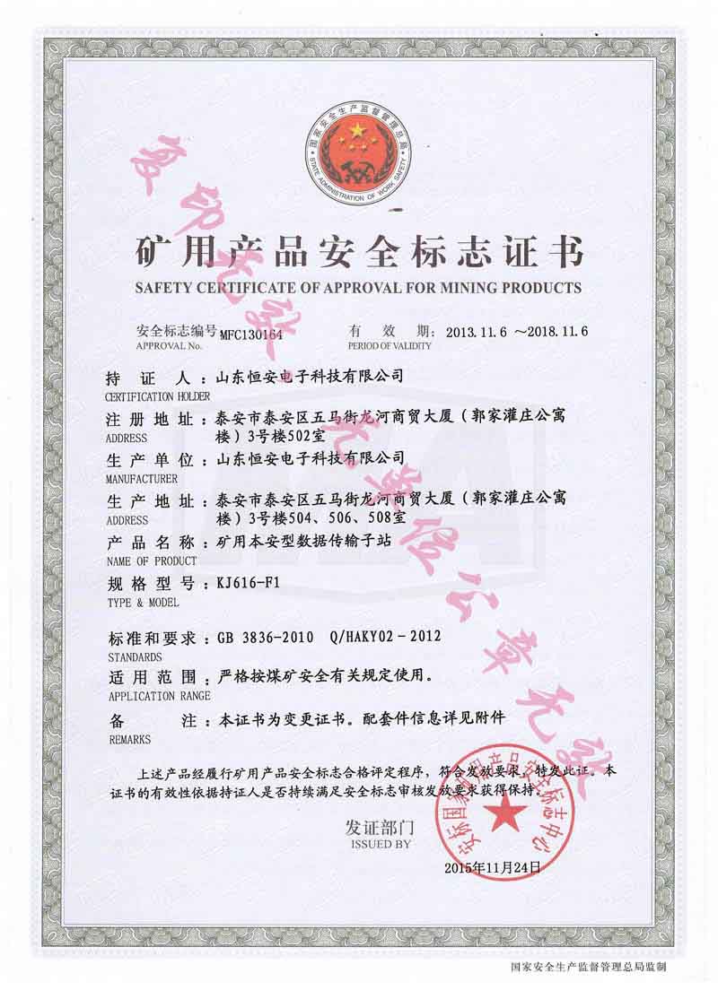 KJ616-F1礦用本安型數據傳輸子站煤安證