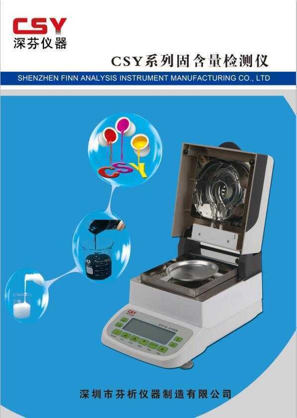 在固含量檢測領域,測量準確性和測量速度之間的矛盾一直沒有解決;針對這一現狀提供一種有烘干法結構的快速測定固含量值的儀器。CSY-G3采用德國HBM稱重系統,保證稱重準確;環形石英鎢鹵紅外線加熱源,快速干燥樣品,與國際烘箱加熱法相比,環形石英鎢鹵紅外線加熱可以在高溫下將樣品均勻地快速干燥,樣品表面不易受損,其檢測結果與國標烘箱法具有良好的一致性,具有可替代性,且檢測效率遠遠高于烘箱法,智能化操作,一般樣品只需幾分鐘即可完成測定。獲得國家知識產權保護(專利號201420090168.1)是一種新型的快速檢測儀器。