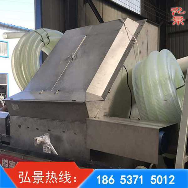 無堵塞泵將未經發酵的糞水泵入機體,在振動電機的作用下加速落料,此時經動力傳動,擠壓絞龍將糞水逐漸推向機體前方,同時不斷提高前緣的壓力,迫使物料中的水分在邊壓帶濾的作用下擠出網篩,流出排水管。禽畜糞便處理機的工作是連續的,其物料不斷泵入機體,前緣的壓力不斷增大,當大到一定程度時,就將卸料口頂開,擠出擠壓口,達到擠壓出料的目的。為了掌握出料的速度與含水量,可以調節主機下方的配重塊,以達到滿意適當的出料狀態。