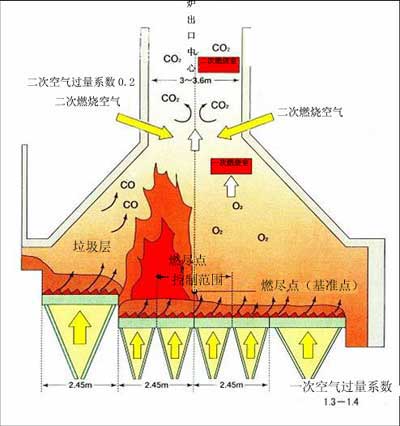 爐出口的構造是從第一段的干燥段熱分解產生的氣體(含CO),通過第2段燃燒帶上部的高溫區域。