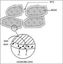 在(zai)固體垃圾(ji)中,高分(fen)子(zi)有機物(wu)經過水解(jie)(jie)后進(jin)入液相,氧氣(qi)溶解(jie)(jie)到(dao)有大量(liang)微(wei)生物(wu)存在(zai)的(de)液相中并參與(yu)反應,使有機物(wu)得到(dao)降(jiang)解(jie)(jie)。