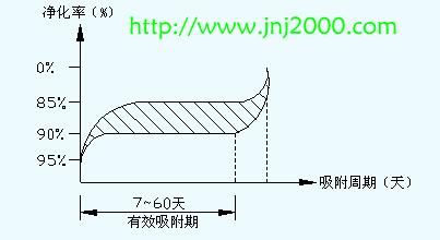 吸附凈化裝置吸附工作區為見圖陰影部分,其周期為7~60天。