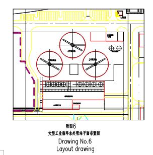 在上述參數均確定的情況下,敞開式工業凈循環水處理的平面布置簡圖便可完成。附圖3為典型的敞開式工業凈循環水處理平面布置。