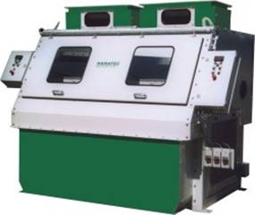 關于堆肥精分選有很多選項。比如,有的借助彈跳篩、圓盤篩對硬物質分離,有的用振動篩加風吹。國外氣流密度分選技術是一個小型系統,由雙螺旋喂料機、鏈板輸送機、滾筒篩、布料機、密度分選機(見圖)、風選機、旋風分離器、皮帶機、布袋除塵器等單元設備組成。其先進性表現在以下幾個方面:
