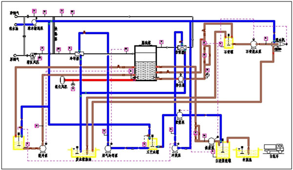 2、采用旋流噴射暴氣(VPB)塔進行脫硫反應,確保脫硫劑有效成分較低的情況下能充分利用白泥,進行優化設計防止系統堵塞和結垢。