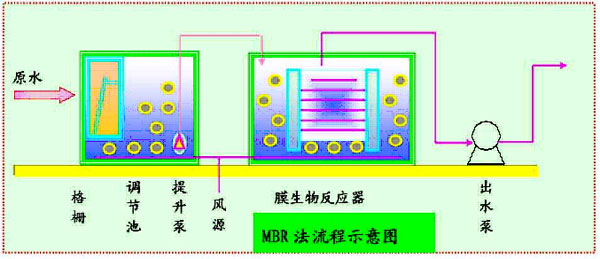 MBR工藝是目前國內外中水處理技術比較先進的技術之一,它具有出水水質標準高、自動化程度高、二次污染少、占地面積小、剩余污泥產量少、氨氮去除率高等優勢。