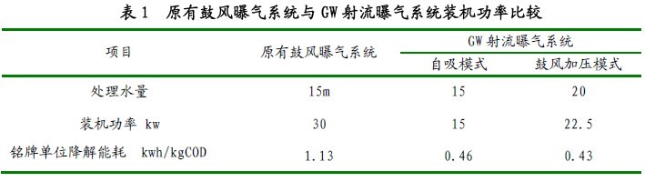 (2)GW 射流曝氣與微孔曝氣相比,噪音、能耗大大降低,每降解1kgCOD 的實際能耗僅為0.26kwh;