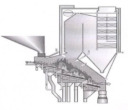 1. 填料式包含了固定與移動的爐排,形成一個梯狀來傳送廢棄物并經由旋轉移動實現完全的燃燒。